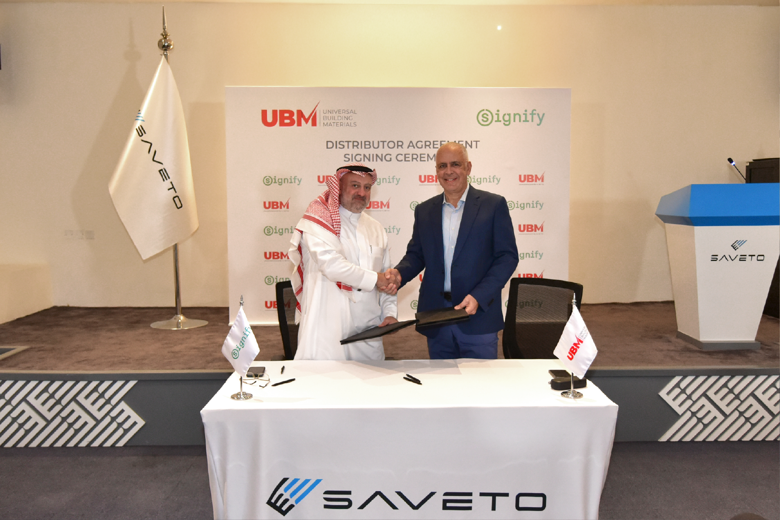 Saveto Group is pleased to announce the signing of a distribution agreement between Universal Building Materials and Signify Saudi Arabia, marking the start of a new strategic partnership in the Kingdom.